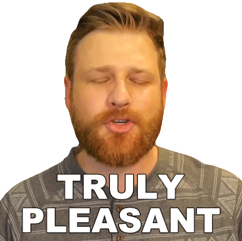 Grady Smith expresses a 'Truly Pleasant' sentiment, closing his eyes briefly before smiling, conveying satisfaction and agreement.