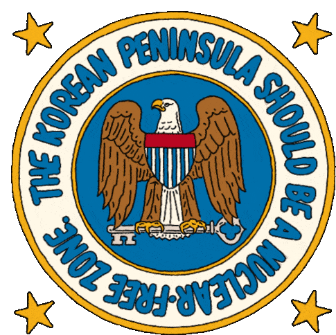 Animated sticker featuring Donald Trump and Joe Biden discussing the Korean Peninsula during a presidential debate.