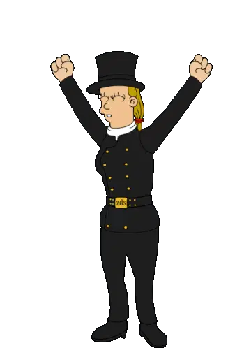 Donald Trump dancing and celebrating with a distinct hand gesture, captured in a pixelated animated sticker, perfect for party vibes.