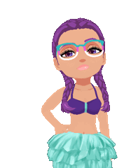 An animated sticker of a cartoon girl with purple braids and glasses, pointing to her cheek as the text 'TRY ME' appears.