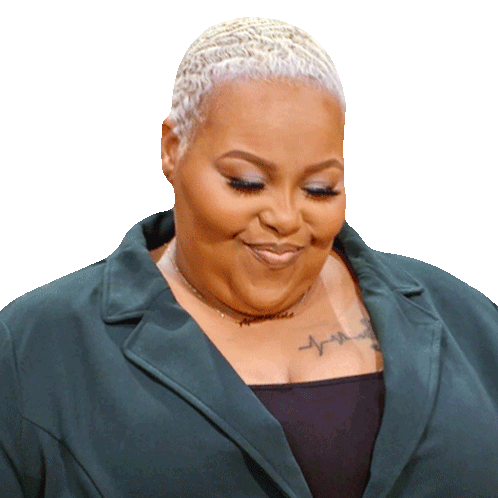 April Fletcher battles giggles, trying to hold back laughter with a suppressed smile and puffed cheeks.