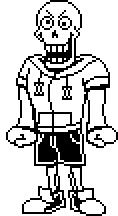 Pixel art sticker of Ts Underswap Papyrus, a character from Undertale, standing with a frustrated expression and outstretched arms.