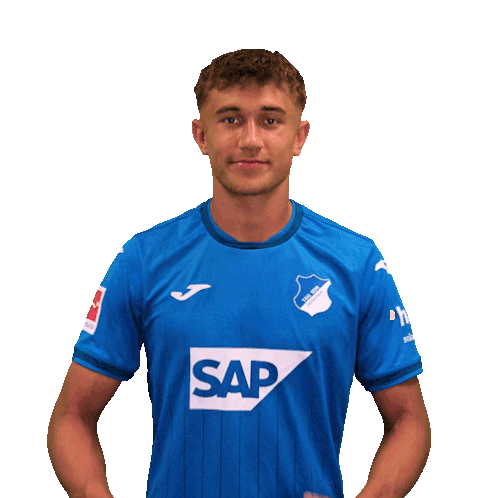Tom Bischof of TSG Hoffenheim, a Bundesliga player, gives two enthusiastic thumbs up, showing approval and positivity.