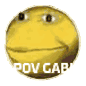 Tsunoda Gabi's pixelated yellow face transforms into a dark, abstract shape with text changing from 'POV CAP' to 'POV GABI'.