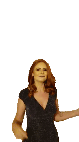 Tais Targa confidently flexes her biceps, smiling brightly and showing off her strength in a sparkly dress.