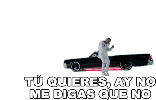 Yandel dances on a black car with red underglow, featuring the caption "Tú Quieres, Ay No Me Digas Que No."