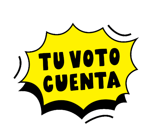 Animated sticker with the message 'Tu Voto Cuenta' (Your Vote Counts) in a vibrant speech bubble, encouraging civic participation.