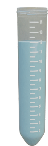 A blue liquid's level steadily drops in a clear graduated measuring tube, indicating a decrease in volume.