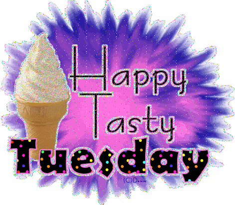 A cute cartoon character, possibly a dog, is focused on drawing or writing on a tablet, with the word 'Tuesday' displayed above.