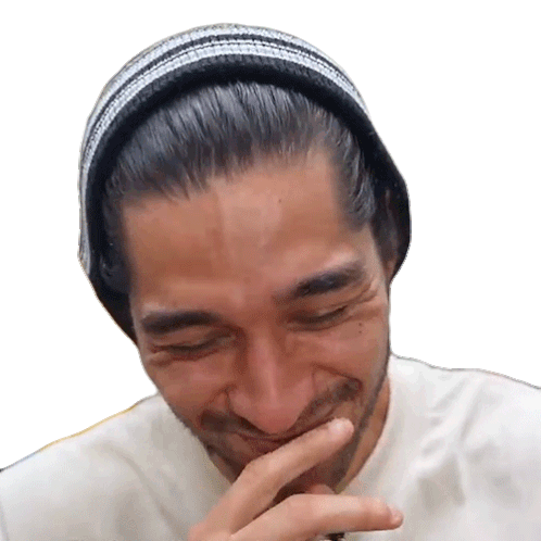 Wil Dasovich laughing and giggling, covering his mouth in amusement. A happy and funny expression.