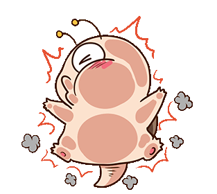 Tumurin, the energetic snail, races towards the viewer and suddenly 'kapaboom!' hits the screen, looking surprised and excited.