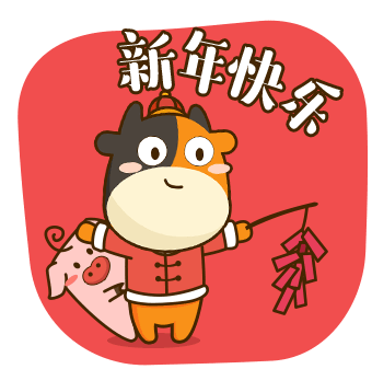 Tuniu character in traditional attire lights firecrackers with a piglet, celebrating Chinese New Year with joy.