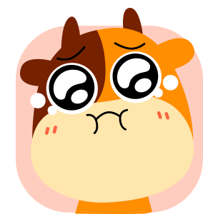 An animated Tuniu cow with big, sad eyes and pink cheeks, looking dejected and crying.