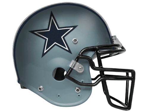 Dallas Cowboys football helmet with blue star, representing America's Team for Turkey Bowl and Super Bowl. Players: CeeDee Lamb, Dak Prescott, Jerry Jones, Mike McCarthy.