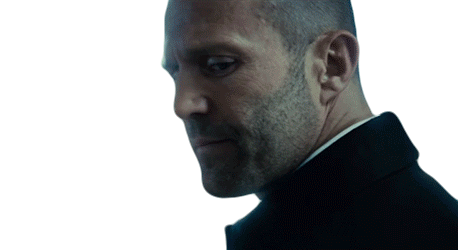Jason Statham as Deckard Shaw from Fast & Furious 7, turning his head to look back with a curious expression.