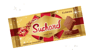 Golden Suchard Classic Chocolate Turrón package with a festive red bow and sparkling details, perfect for holidays.