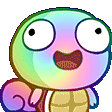 An excited, wide-eyed rainbow-colored RGB turtle with a shell, looking surprised or happy.