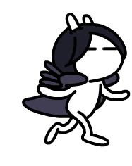 Tuzki Usagi, a stick-figure-like character, runs quickly with a black cape flowing behind, appearing happy and in a hurry.