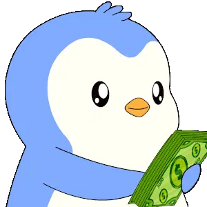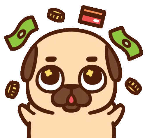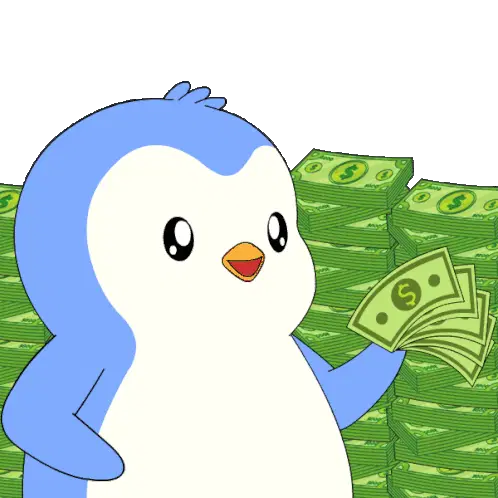 Tuzki Usagi winks while holding a stack of pink money, a playful sticker for payday or feeling rich.