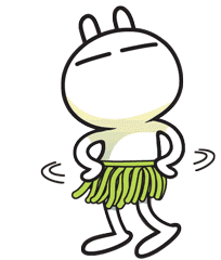 Tuzuki Usagi, the white rabbit character, performs a lively Hawaiian hula dance with a green skirt.