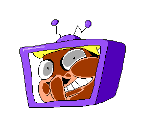 A pixel art animation of Fake Peppino from Pizza Tower, depicted inside a purple television with antennas.