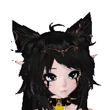 a girl with black hair and cat ears is wearing a choker and a necklace .