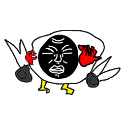 Kill15 cartoon egg-like creature with a black face and red hands, animatedly tweaking and moving erratically.