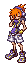 Neku from Twewy, a pixel art character with orange hair and purple shorts, stands on a white background.