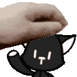 Mr. Mew, the black cat character from The World Ends With You, is gently petted by a hand.