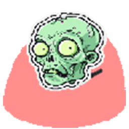 A fun and spooky animated sticker featuring a cartoon zombie head with a vibrant pink background, playfully twirling.