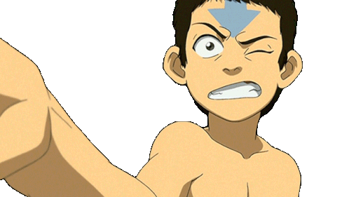 Aang from Avatar: The Last Airbender looks annoyed with a twitching eye, showing his signature blue arrow.