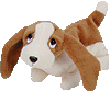 A cute brown and white Ty Beanie Basset Hound dog with long floppy ears and a sad, droopy expression.