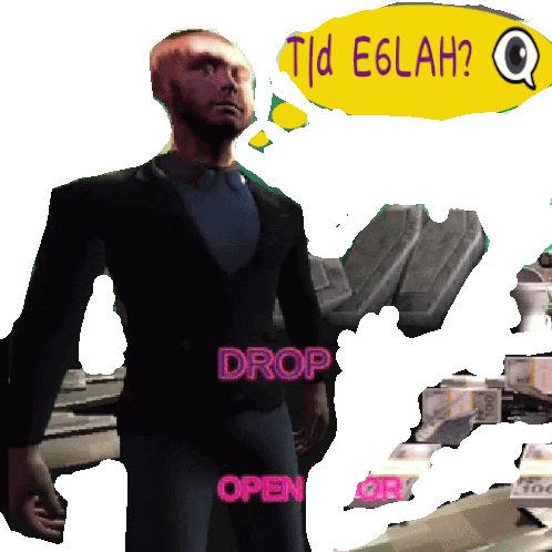 a man in a suit is standing in front of a yellow speech bubble that says tid e6lah