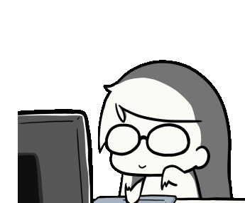 A focused cartoon character with glasses types quickly at a computer, surrounded by tall stacks of paper.