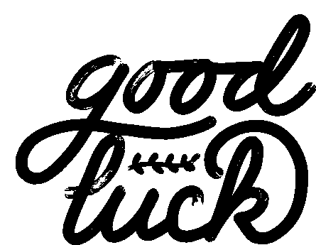A vibrant animated sticker featuring the phrase 'Good Luck' in bold yellow typography, perfect for sending positive wishes.