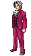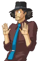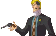 Tyrell Badd, the detective from Ace Attorney Investigations, thoughtfully holds a red popsicle while smoking a cigarette.