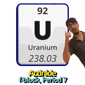 a man giving a thumbs up next to a sign that says 92 uranium 238.03