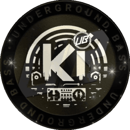 Animated circular logo for Underground Bass featuring a stylized 'KI' with cityscape and sound waves, sparkling effects.