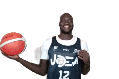 Mor Niang, a player for Udea Algeciras, smiles while holding a basketball, representing the team.