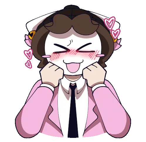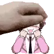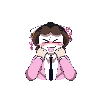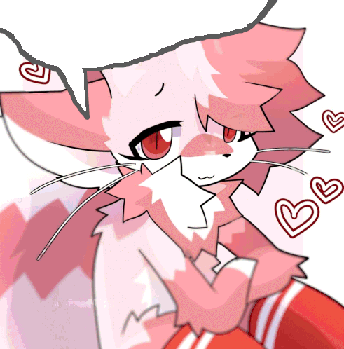 a drawing of a pink and white furry animal with hearts around it
