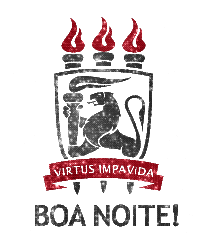 Animated sticker for UFPE (Universidade Federal de Pernambuco) featuring its motto 'Virtus Impavida' and a 'Boa Noite!' greeting.