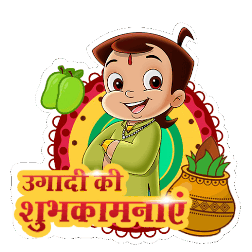 Chhota Bheem celebrates Ugadi with greetings. Features the beloved character with traditional festive elements.