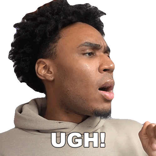 Rumi Robinson, a young man with curly hair, expresses annoyance with an "Ugh!" reaction.