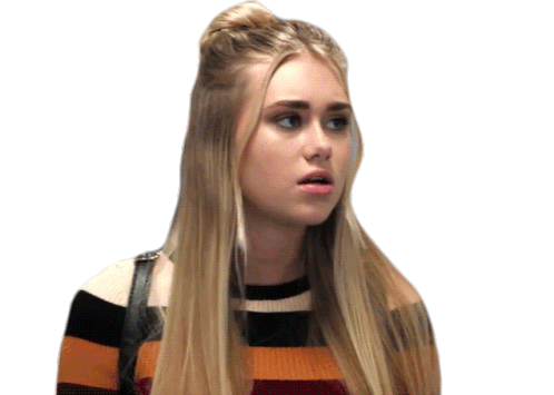 Emily Skinner as Diana looks stressed and overwhelmed, sighing with exasperation in a striped sweater.