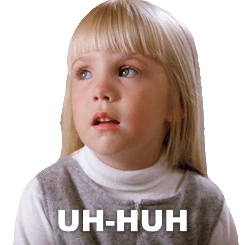 Carol Anne Freeling, played by Heather O'Rourke, from Poltergeist, with the text "UH-HUH" below her.