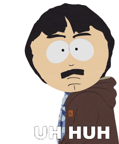Randy Marsh from South Park blinks with a surprised or confused expression, accompanied by the text 'Uh Huh'.