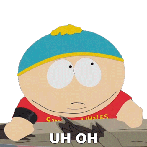 Eric Cartman from South Park looks surprised and concerned, with the caption 'UH OH' appearing below him.