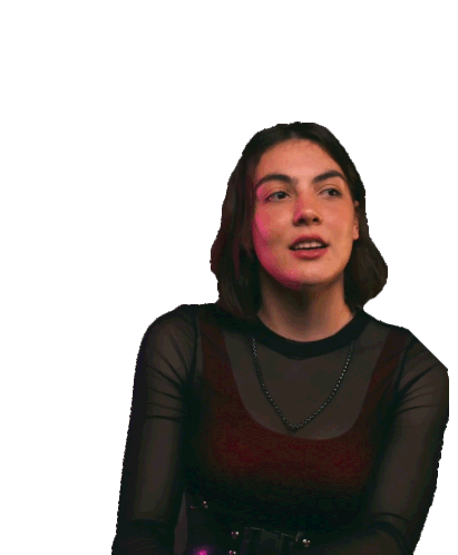 Evie Irie looks to the side with a thoughtful, slightly annoyed expression, perfect for conveying 'uhm,' 'hmm,' or 'ugh' moments.