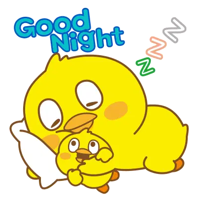 A cute yellow chick character with a red tuft on its head smiles with closed eyes and nods happily.
