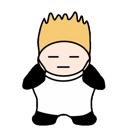 A simple cartoon character with spiky yellow hair, covering its face to protect from ultrafine dust and polluted air.